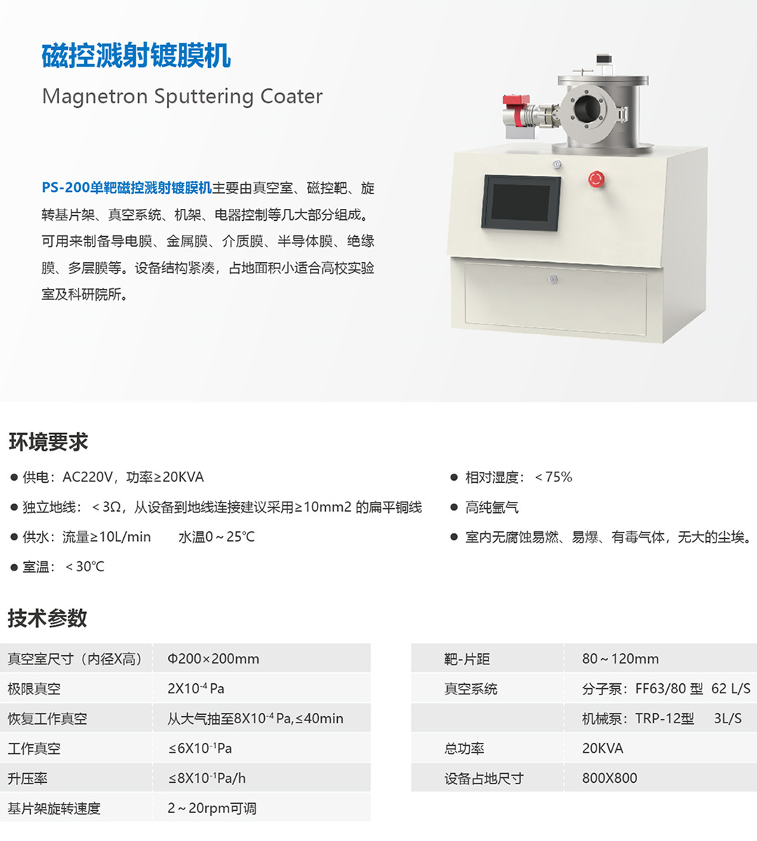 由真空室、磁控靶、旋轉(zhuǎn)基片架、真空系統(tǒng)、機(jī)架、電器控制等幾大部分組成。